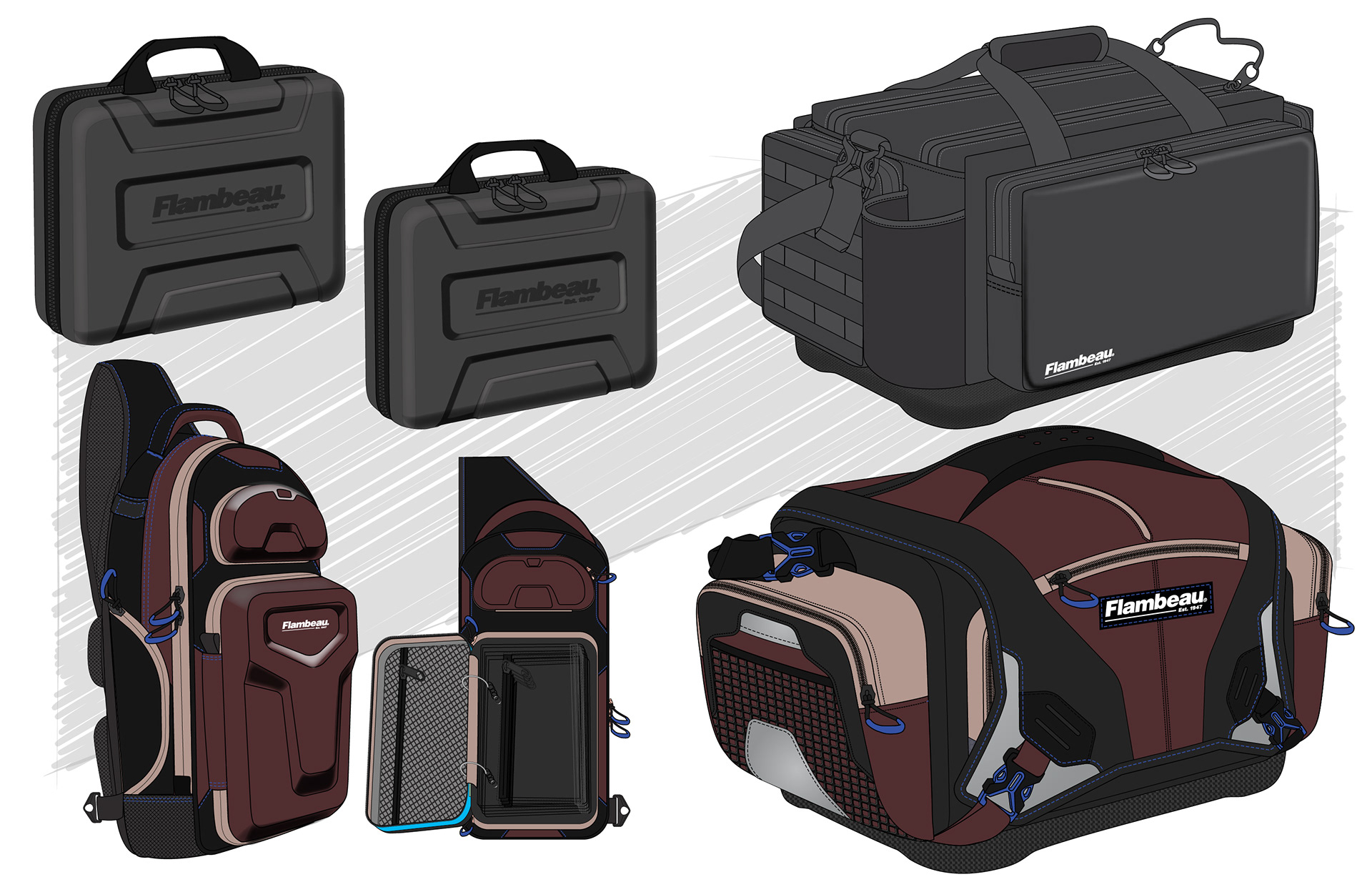 A line of soft tackle bags designed and redesigned for Flambeau. Photography copyright Flambeau. I do not own these images.